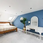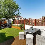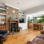 2-slaapkamer Charming Family Home With Stoves And Garden heeft een terras en een zitruimte met een open haard, en moderne faciliteiten zoals een flatscreen TV met satellietzenders. De accommodatie is ook ingericht met een bank en een bureau. Dit appartement heeft 2 badkamers, voorzien van een apart toilet, een badkuip en een douche, samen met een haardroger en handdoeken.